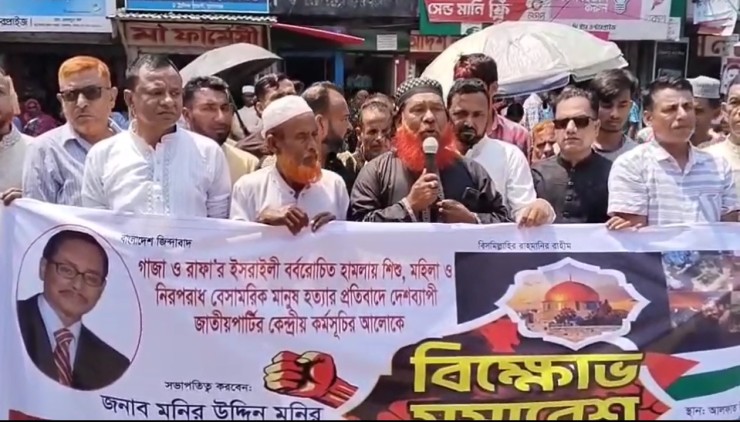 সুনামগঞ্জ জেলা জাতীয় পার্টির উদ্যোগে আলফাত স্কয়ারে ফিলিস্তিনের পক্ষে প্রতিবাদ সমাবেশ অনুষ্ঠিত হয়।